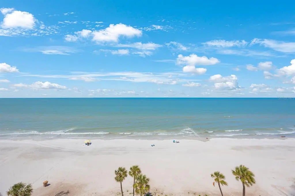Welcome to your Slice of Paradise! Floor to Ceiling Renovation with High End Finishes located in Ocean Sands offering you the Ultimate Beach Lifestyle. Sold fully furnished with future rentals in place, this condo is perfect as an Investment, Second or Primary Home or a 1031 Tax Deferred Exchange. The open-concept living space offers coastal-chic décor, luxury vinyl plank flooring, designer lighting, custom cabinetry throughout and interior laundry. The gourmet kitchen features quartz countertops, stainless steel appliances, and a large breakfast bar that’s perfect for entertaining. A direct Gulf front primary bedroom boasts triple back sliders to let in those cool evening breezes and offers privacy with its completely renovated en-suite bathroom and huge walk-in closet. Guests will appreciate the second bedroom complete with one king and one queen bed with access to the renovated full bath in hall. Spend time with family and friends on the 30-foot-wide private balcony with breathtaking, unobstructed view of the Gulf of Mexico—perfect for watching the dolphins play, taking in an evening sunset or just relaxing to the sounds of the waves. Carrier A/C unit and new water heater installed less than two years ago, storm rated windows and storm shutters provide peace of mind and energy efficiency. Enjoy resort-style amenities, including a heated beachfront pool and spa, shuffleboard courts, bike room, BBQ grill area and a cozy tiki hut—all just steps from the sand. For your convenience, the unit includes underbuilding parking space # 30, located close to the lobby entrance, plus a private second storage closet near the elevators on the 9th floor. Madeira Beach is full of easy to get to activities. Leave the car behind and enjoy nearby ROC Park Entertainment Venue with recreational activities, ball fields, basketball and tennis courts, a dog park and fishing pier. Catch some live music at one of the local bars or visit the Cambria Hotel for dinner and drinks on the rooftop deck. Take a trolley to Famous John’s Pass Village and enjoy the extensive watersports rentals or visit the shops and restaurants. Take the Beach to ‘Burg SunRunner and spend the day in Downtown St. Petersburg visiting the local Arts District, upscale dining, craft breweries, museums and the St. Pete Pier. Orlando/Disneyworld just 90 minutes away; Tampa International Airport about one half hour away. Whether you’re looking for a personal beach retreat or an income-producing property, this unit delivers both. Take advantage of this rare opportunity to own a one-of-a-kind beachfront condo in one of Madeira Beach’s most desirable communities. Paradise awaits at Ocean Sands!