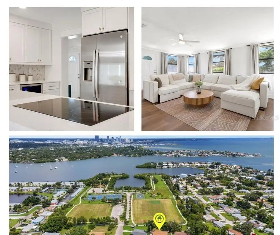 Escape to your island oasis on Coquina Key, where laid-back living meets the vibrant heart of St. Petersburg. This meticulously maintained 4-bedroom, 2-bath home has been recently remodeled to perfection. The stunning chef's kitchen features quartz countertops, double ovens, a beautiful backsplash, and high-end fixtures, along with ample storage and a dedicated coffee bar area complete with a beverage cooler. The oversized primary bedroom boasts a built-in fireplace and generous closet space, while the large laundry room and beautifully appointed bathrooms provide both convenience and luxury. Enjoy spacious living areas that overlook a tranquil landscaped backyard, fully fenced for privacy and backing up to an incredible park. Here, you'll find tennis and pickleball courts, basketball courts, two soccer fields, two dog parks, and a scenic waterfront walking trail. Notable upgrades include a new A/C (2021), roof (2019), water softener (2023), and water heater (2025), making this home as reliable as it is beautiful. Outside, an eco-friendly circular driveway welcomes you with gorgeous landscaping, setting the tone for the serene surroundings. Just three miles from downtown St. Pete, venture over the charming bridge to discover two cozy coffee shops, excellent restaurants, and a new local hotspot where you can connect with island residents—there’s even a sandwich named after the island! Plus, a 24-hour convenience store is nearby for those late-night cravings. Coquina Key Island, known as the friendly island, lives up to its name with a true sense of community. Neighbors wave hello as they stroll by or cruise past in golf carts, and residents gather for planned events like movies in the park and the beloved annual Christmas parade. All of this, with easy access to some of the most beautiful beaches in the area